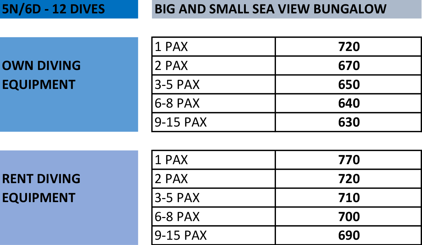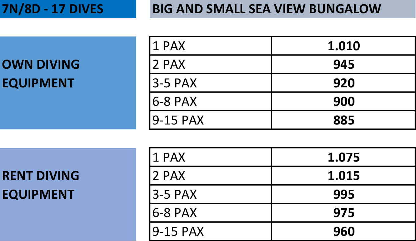 7 nights/8 days accommodation and 6 days of diving